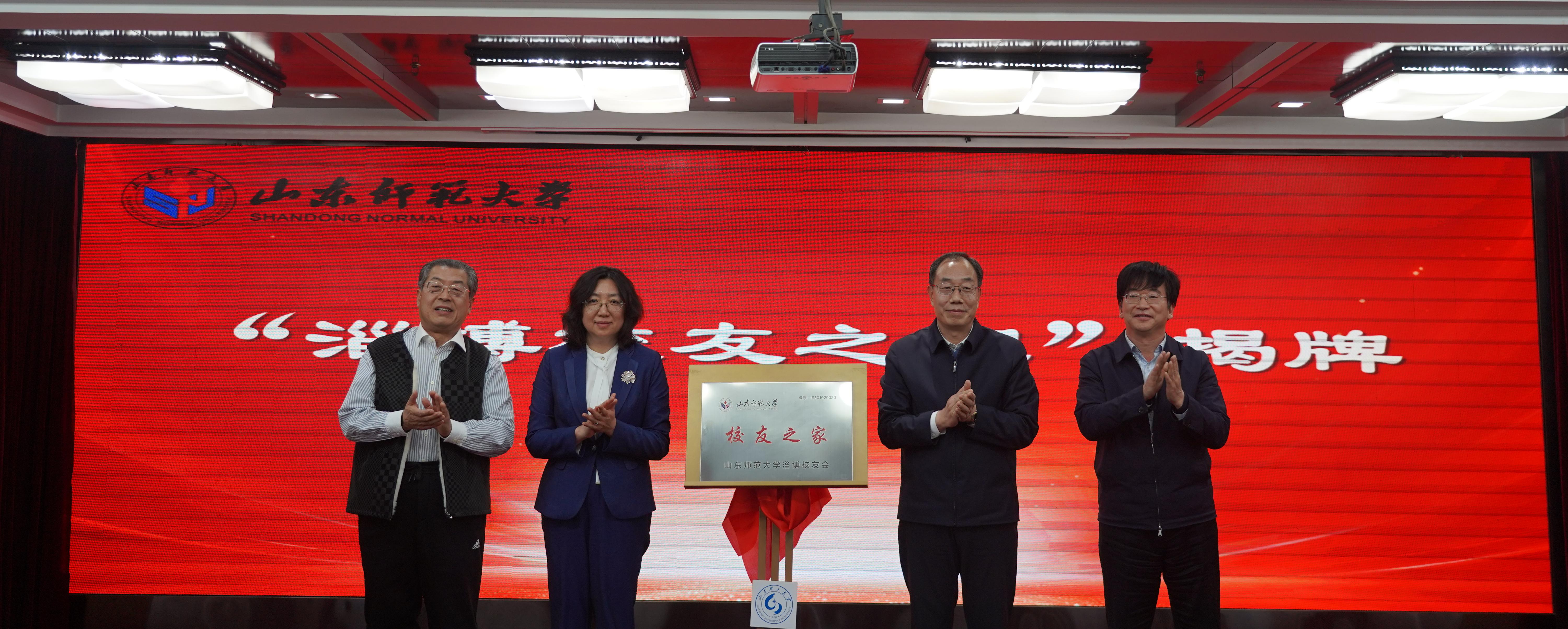 冯继康、周珊珊、陈盛伟、荣国共同为“淄博校友之家”揭牌。